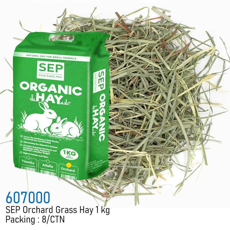 Animals love the sweet smell and taste of leafy Orchard Grass Hay, and that makes it a good addition to an herbivore’s healthy meal plan. Like other long-strand grass hays, the soft-textured Orchard Grass Hay is high in fiber, low in protein and supports the health of small herbivores by stimulating digestion, preventing obesity and making mealtime more appealing.